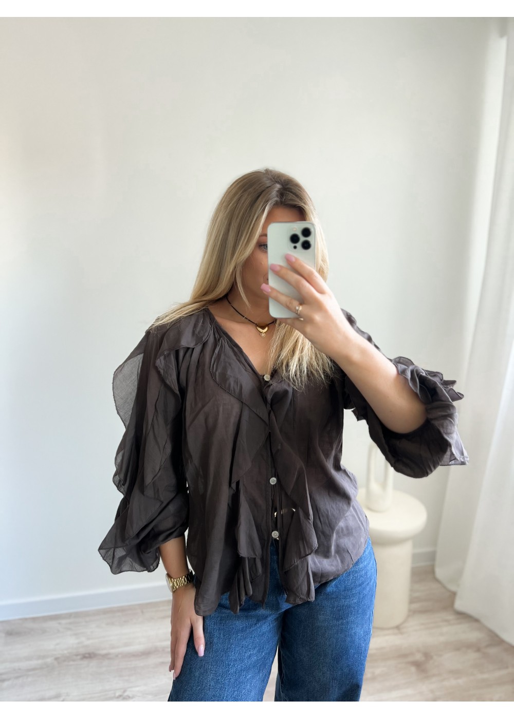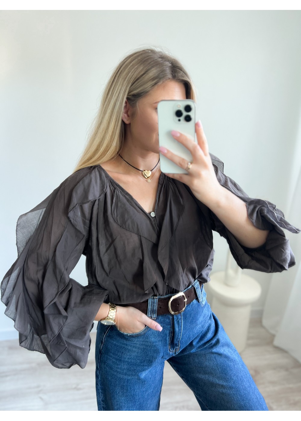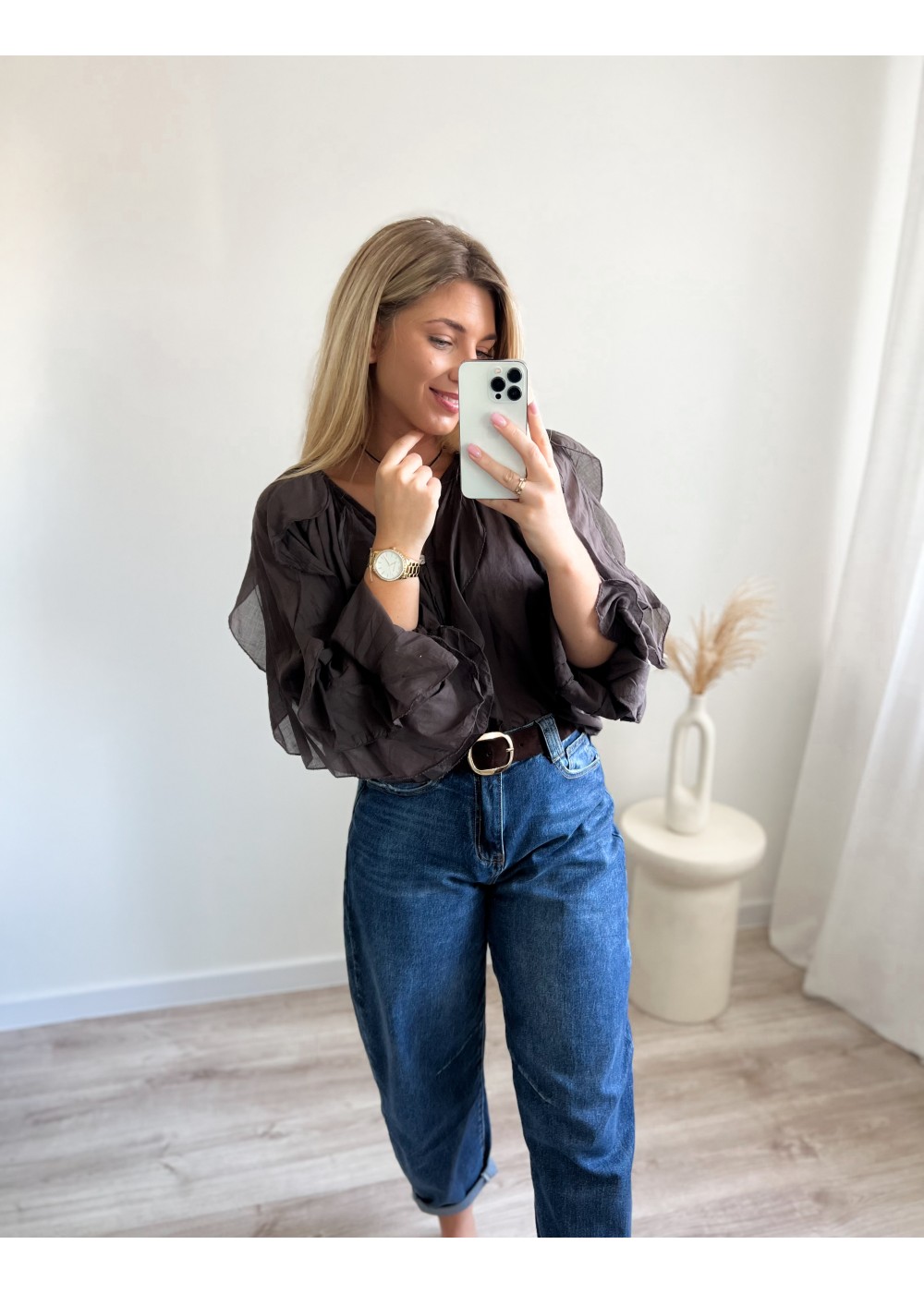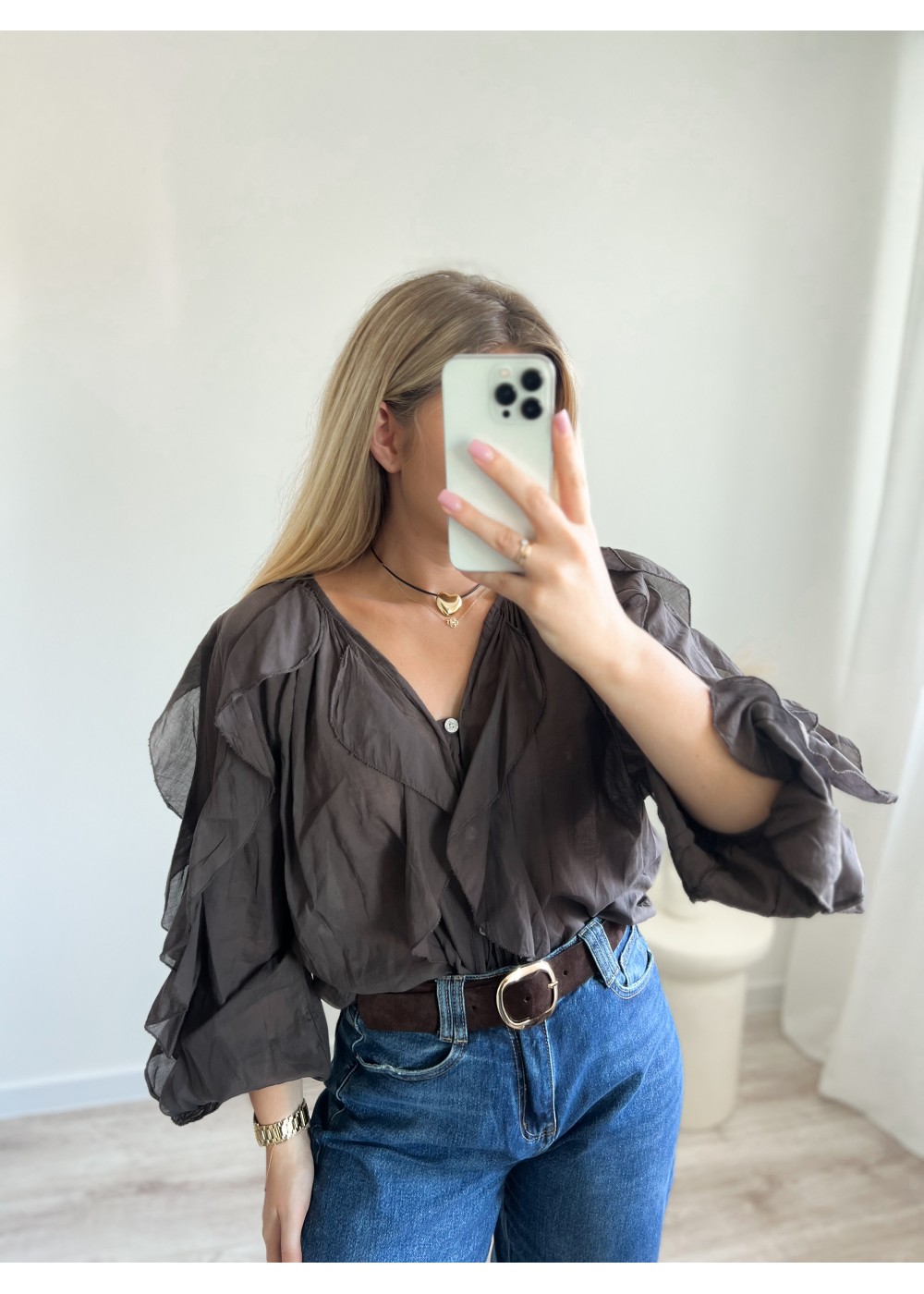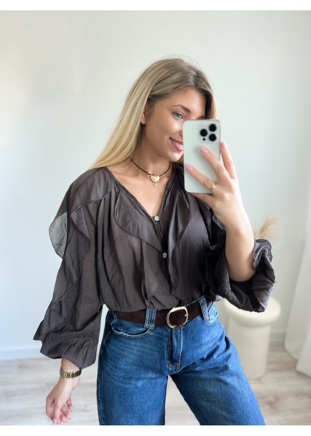 Koszula z falbanami czekolada