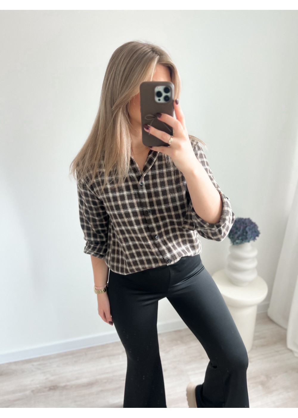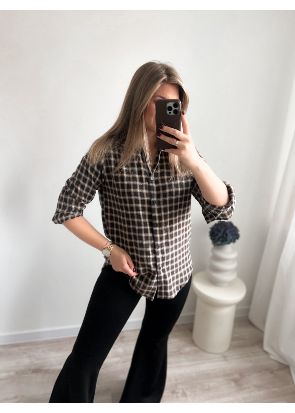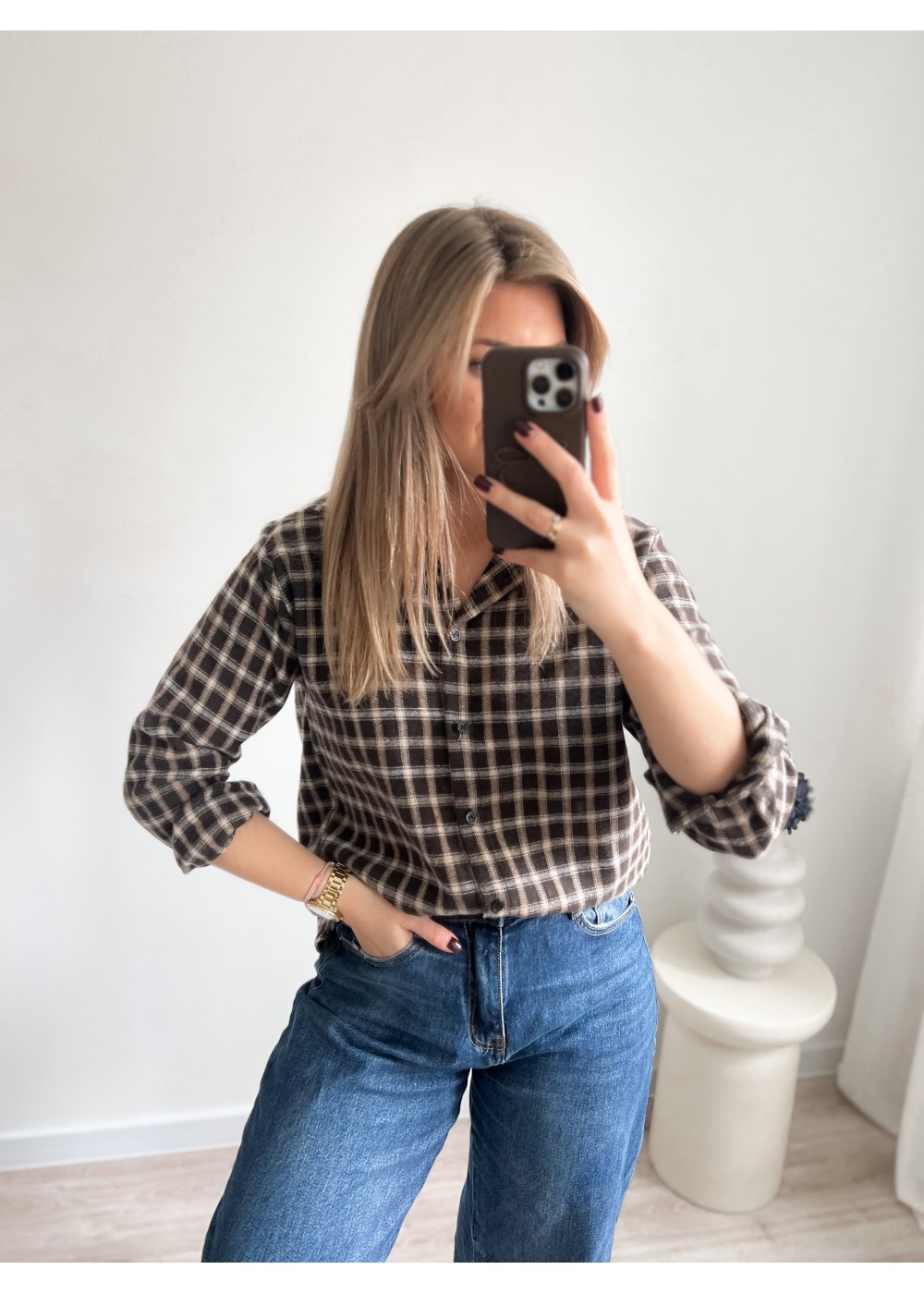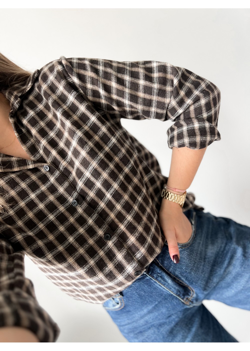 Koszula flanelowa w kratę czekoladowa