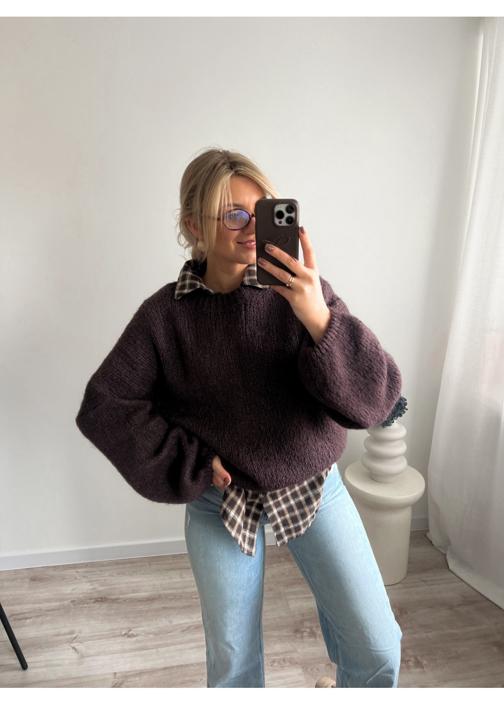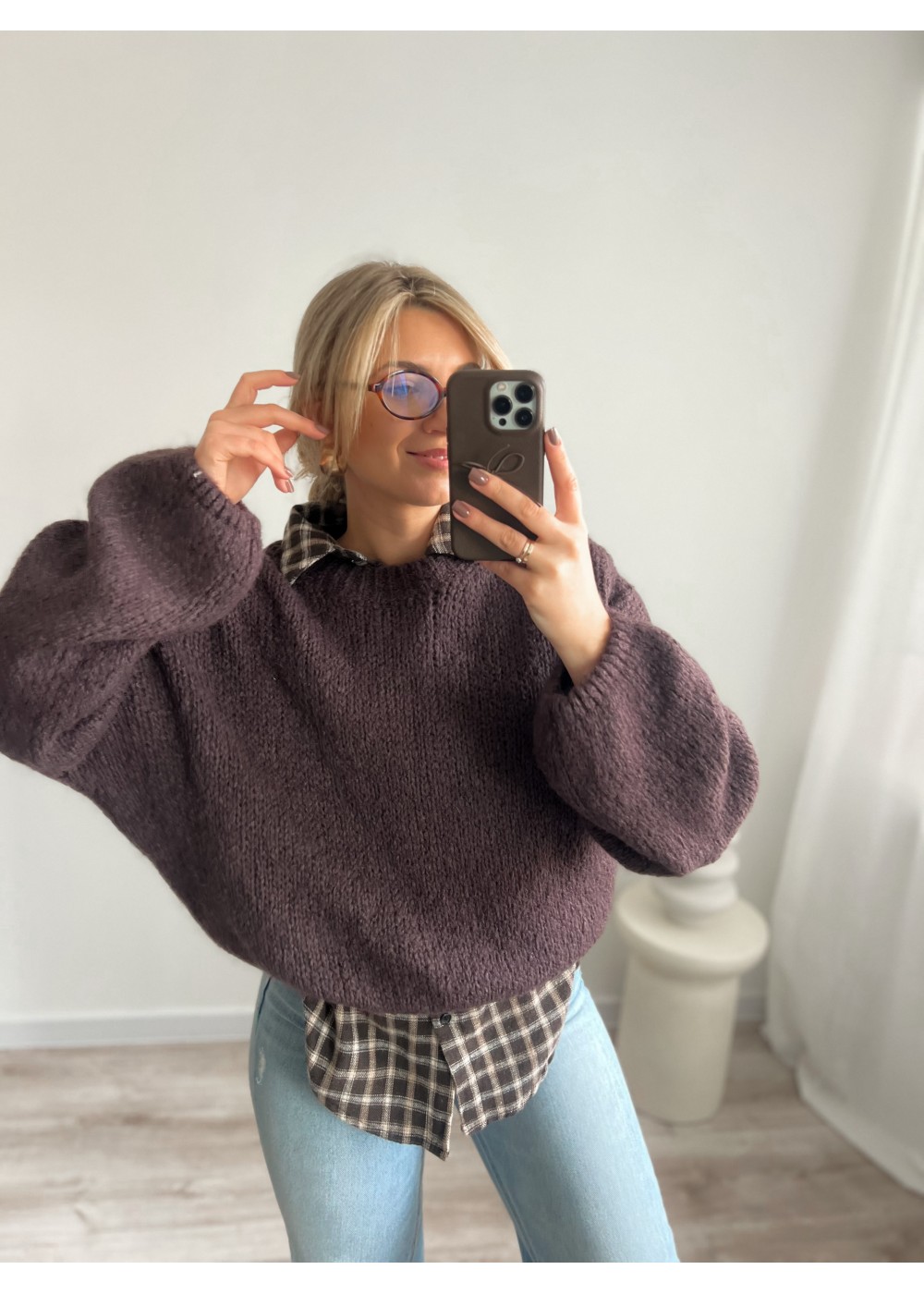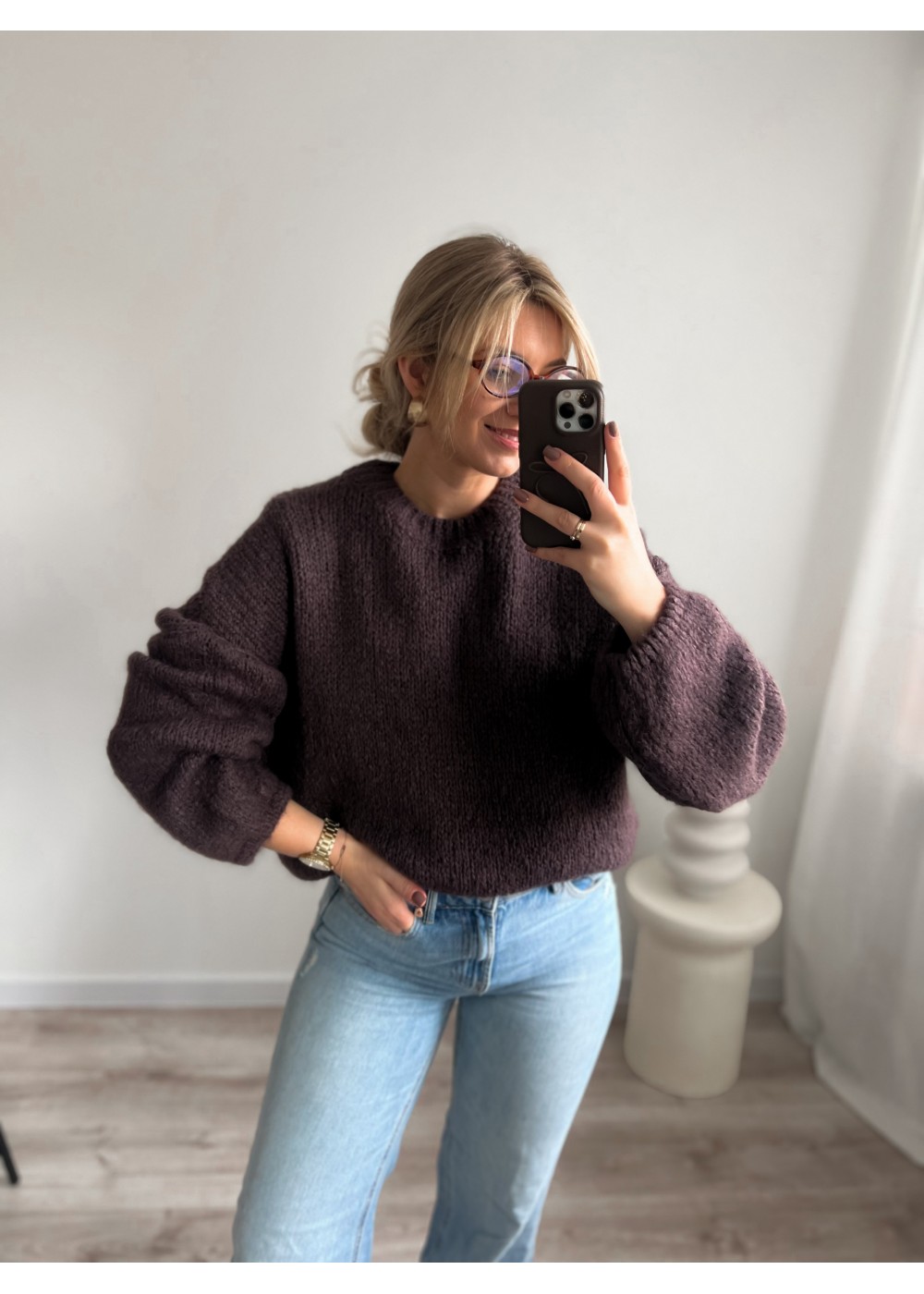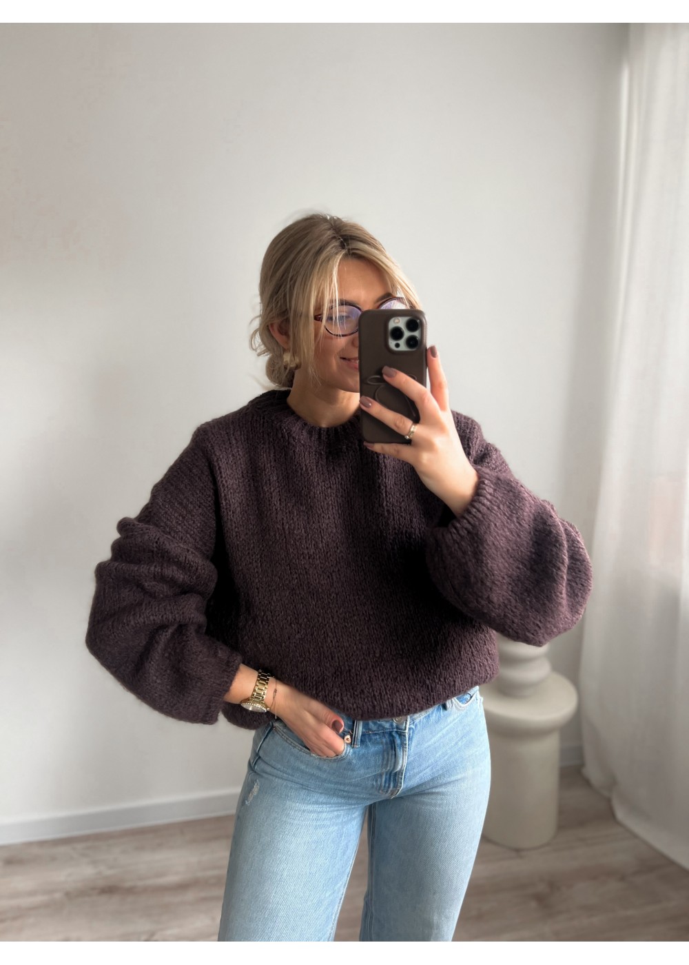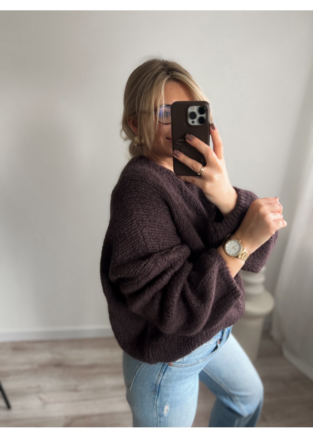 Sweter z moherem czekolada