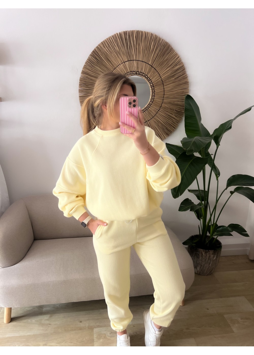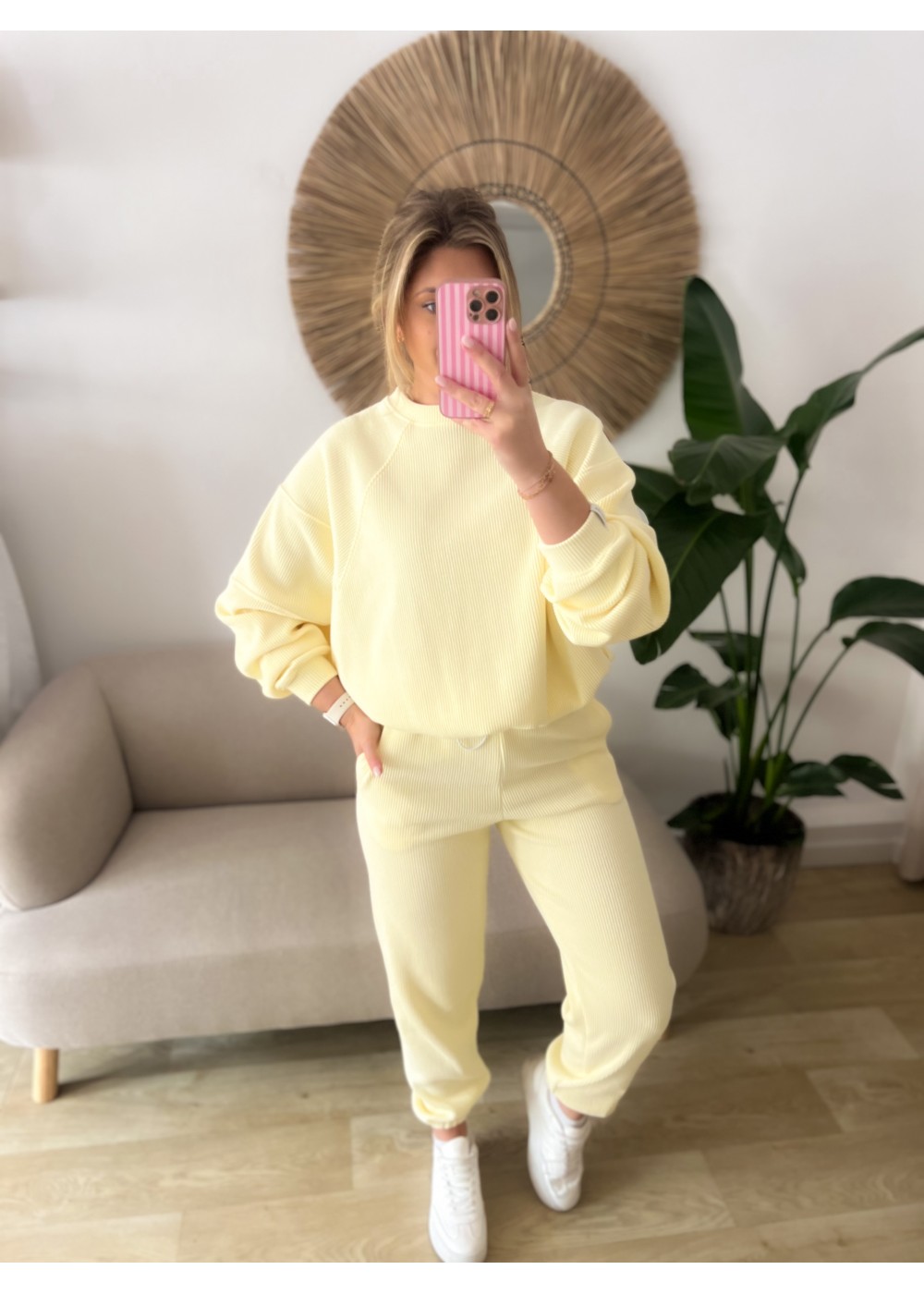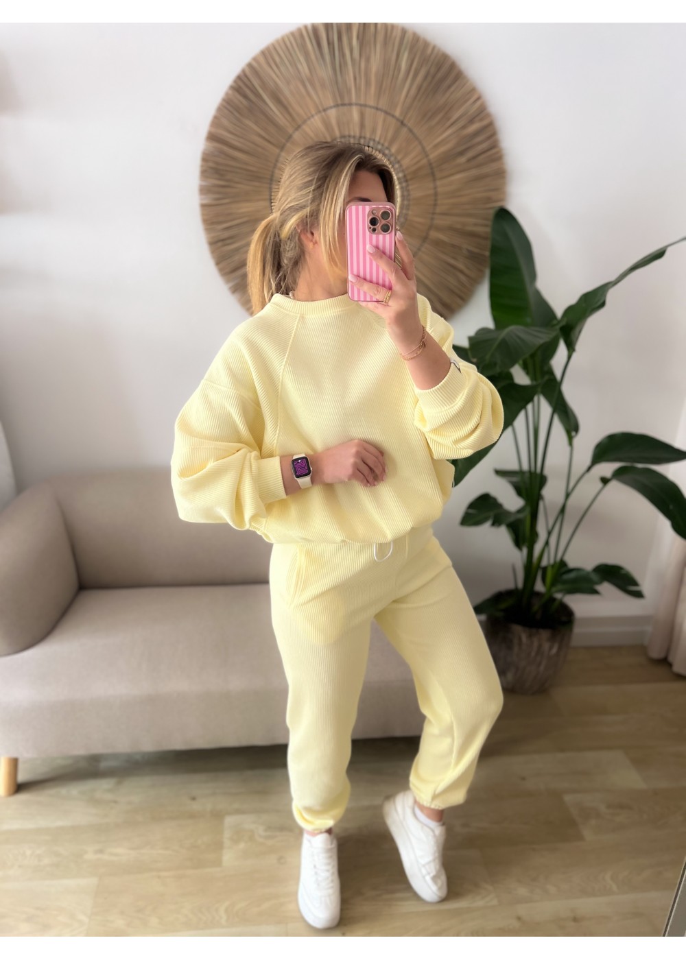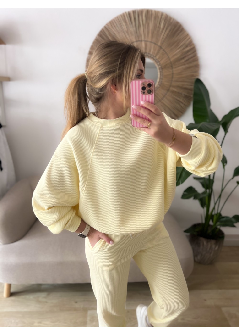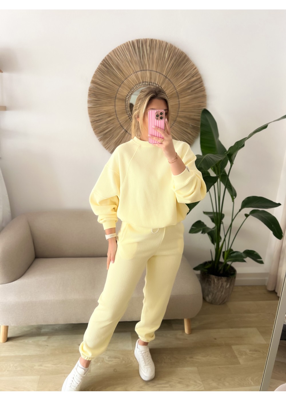Dwuczęściowy. Składa się z luźnej bluzy i spodni typu joggery.
