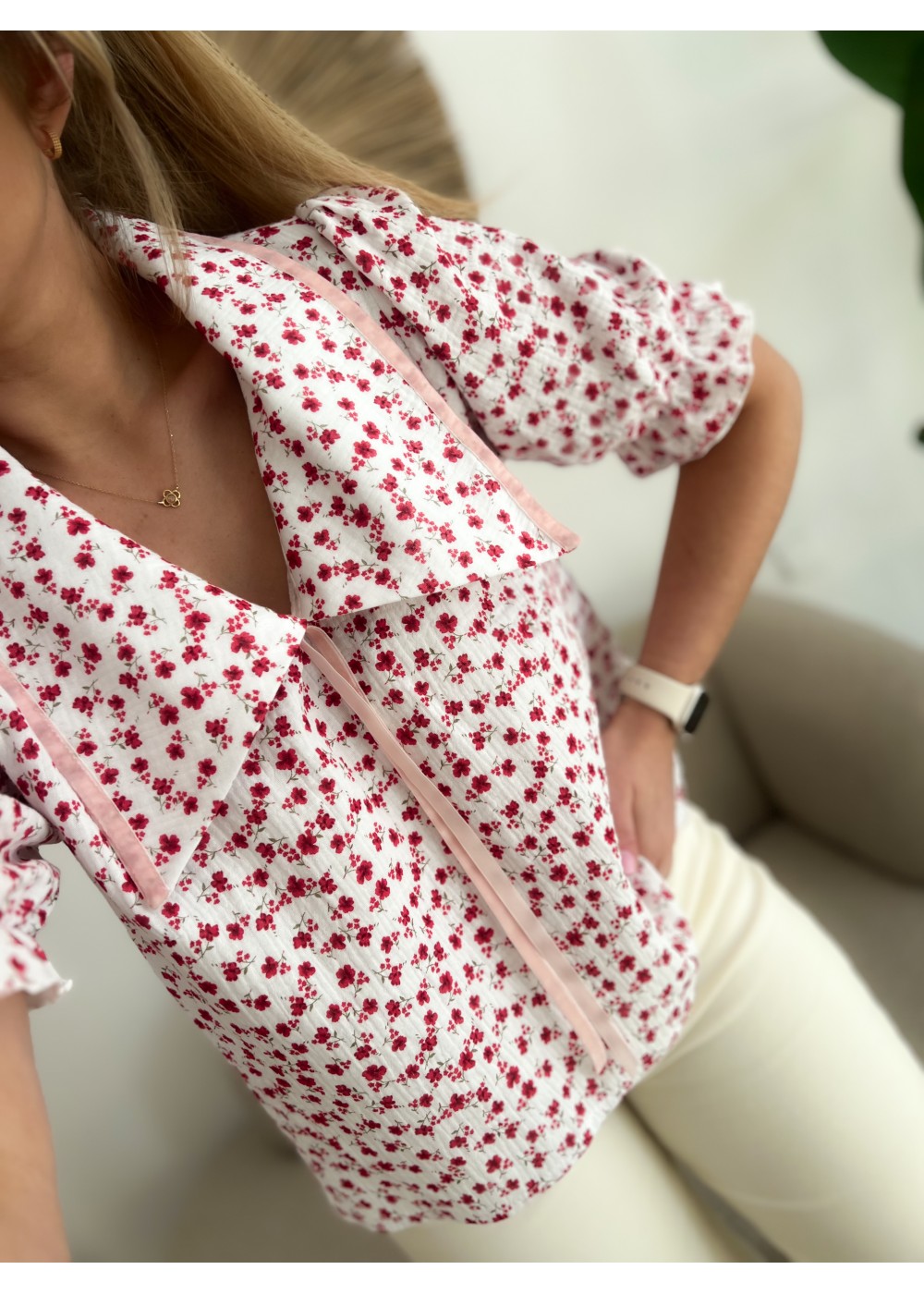 Koszula muślinowa z kołnierzykiem.
