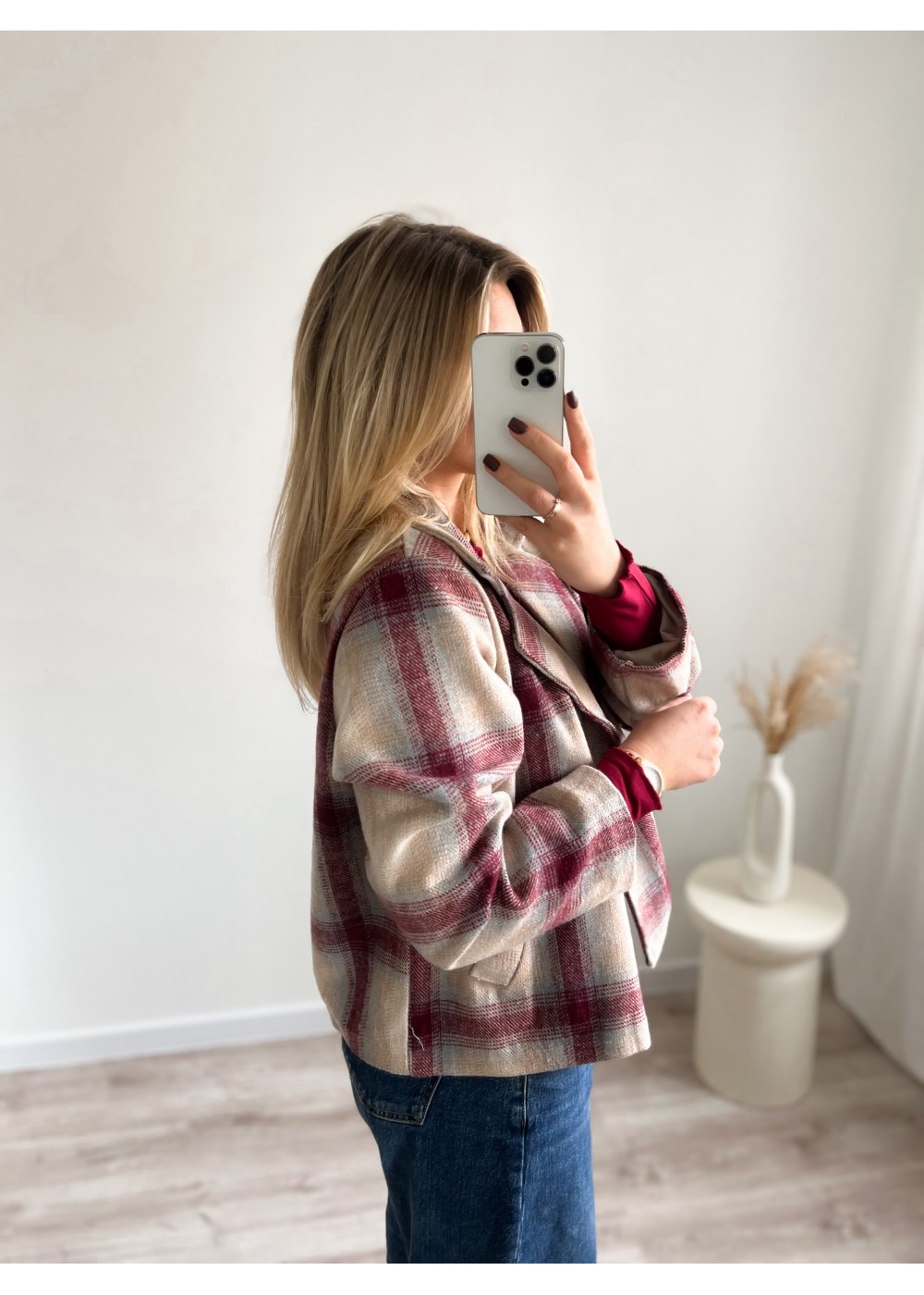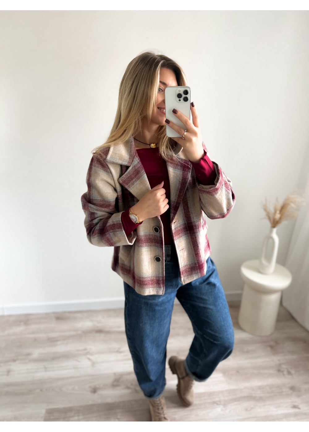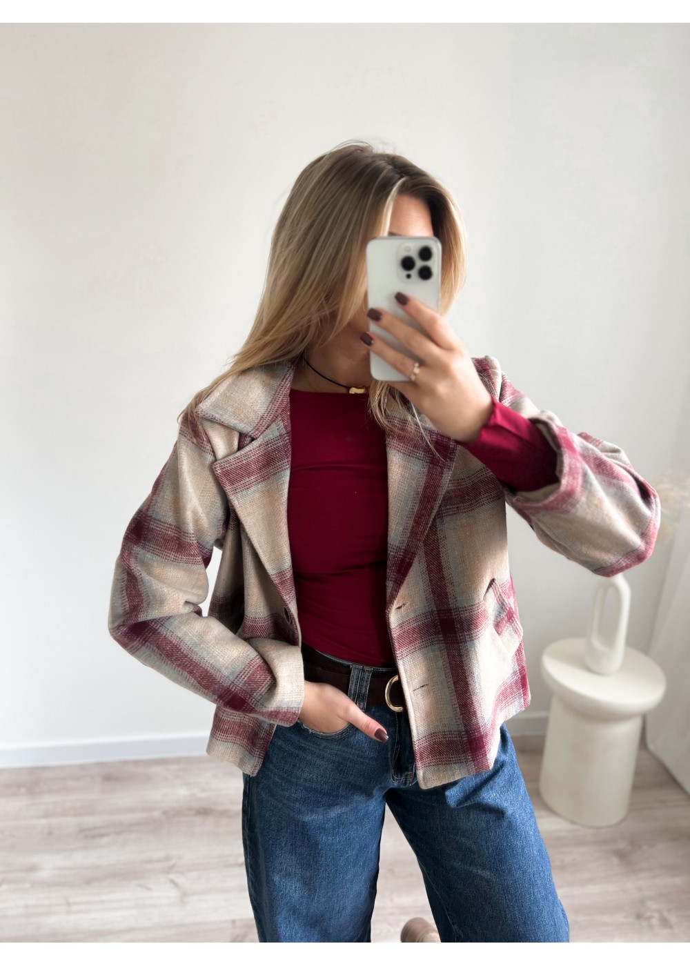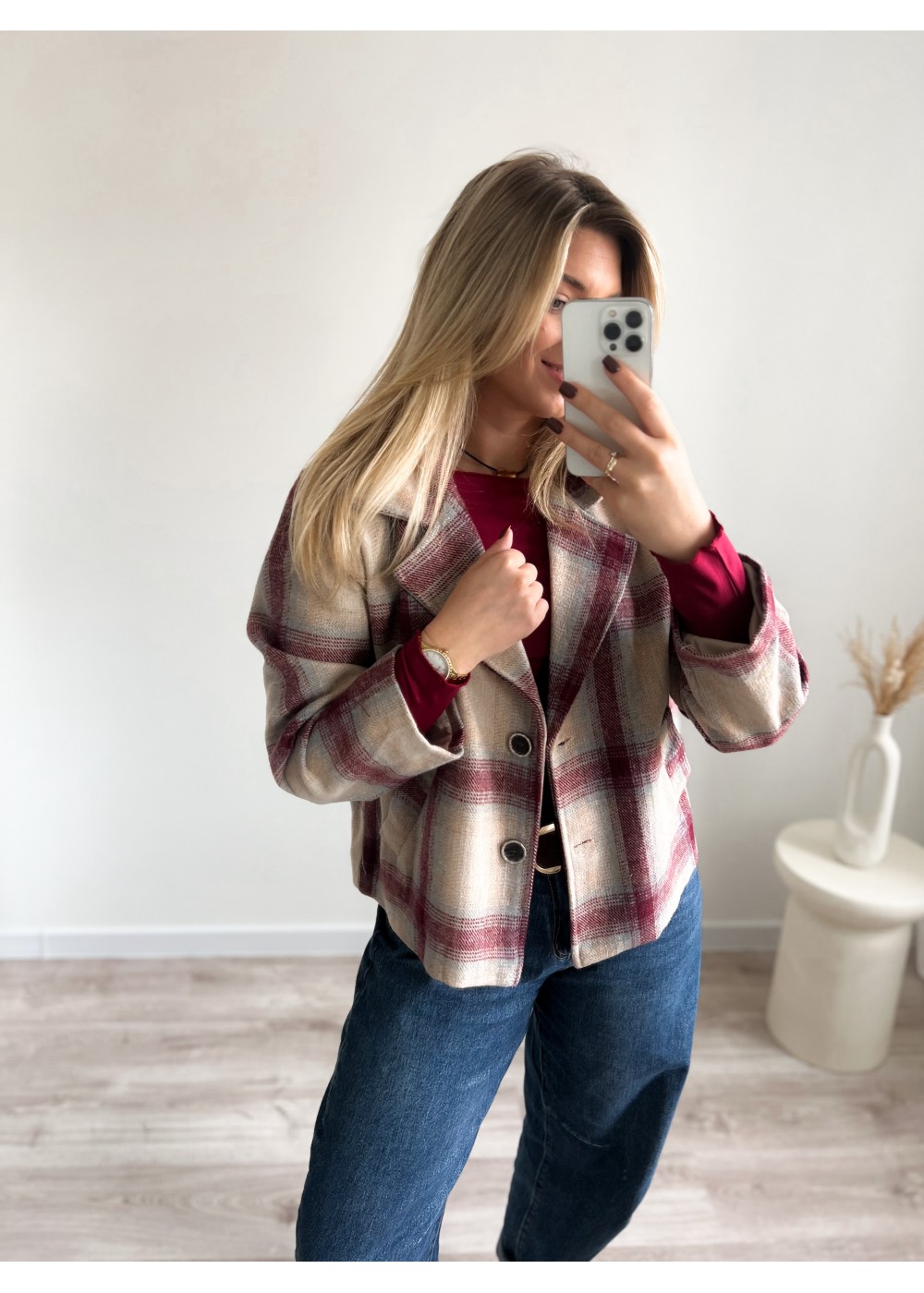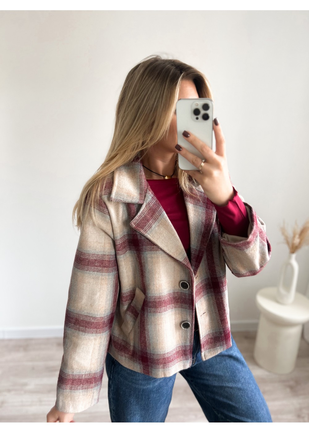 Narzutka w kratę bordową