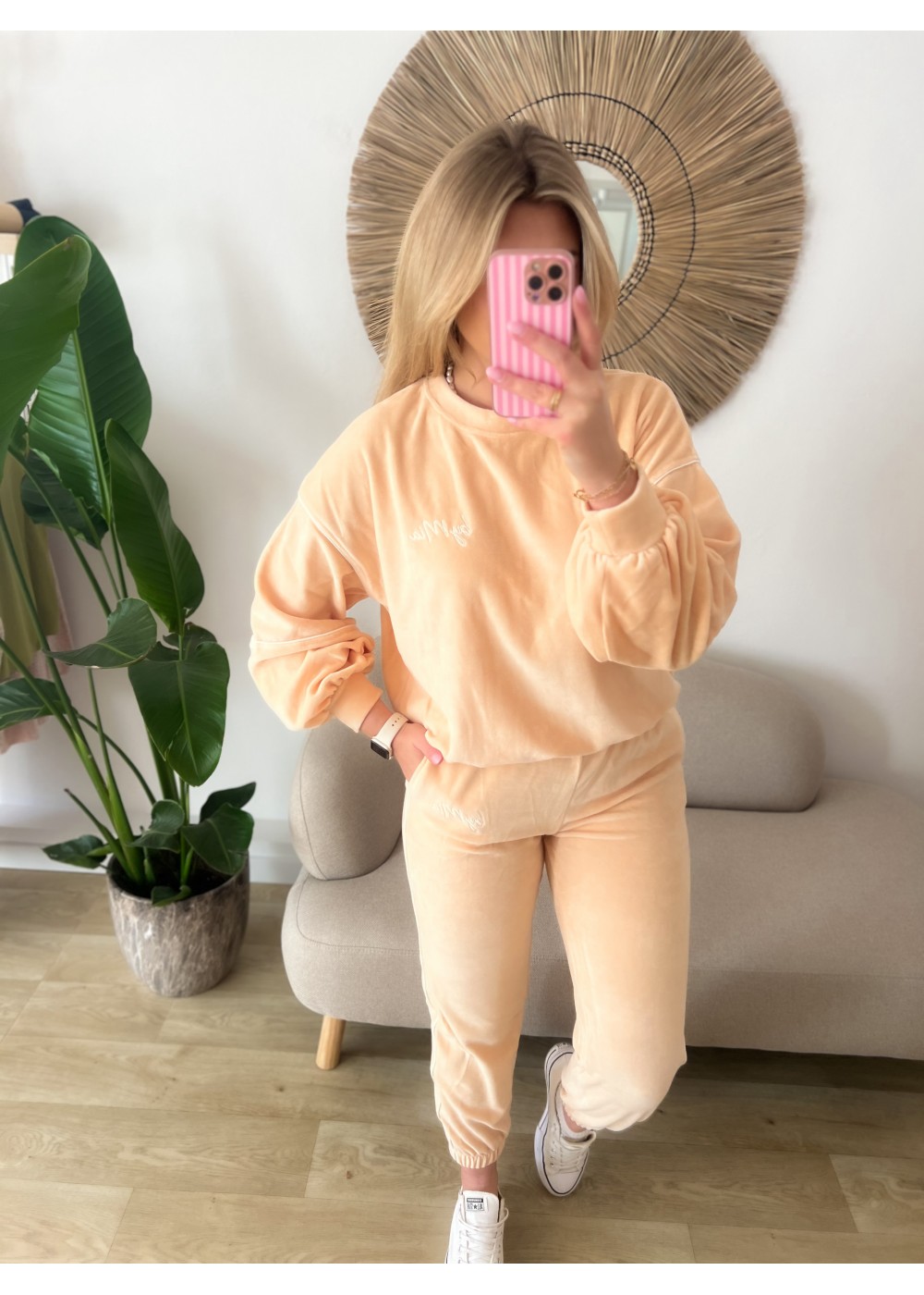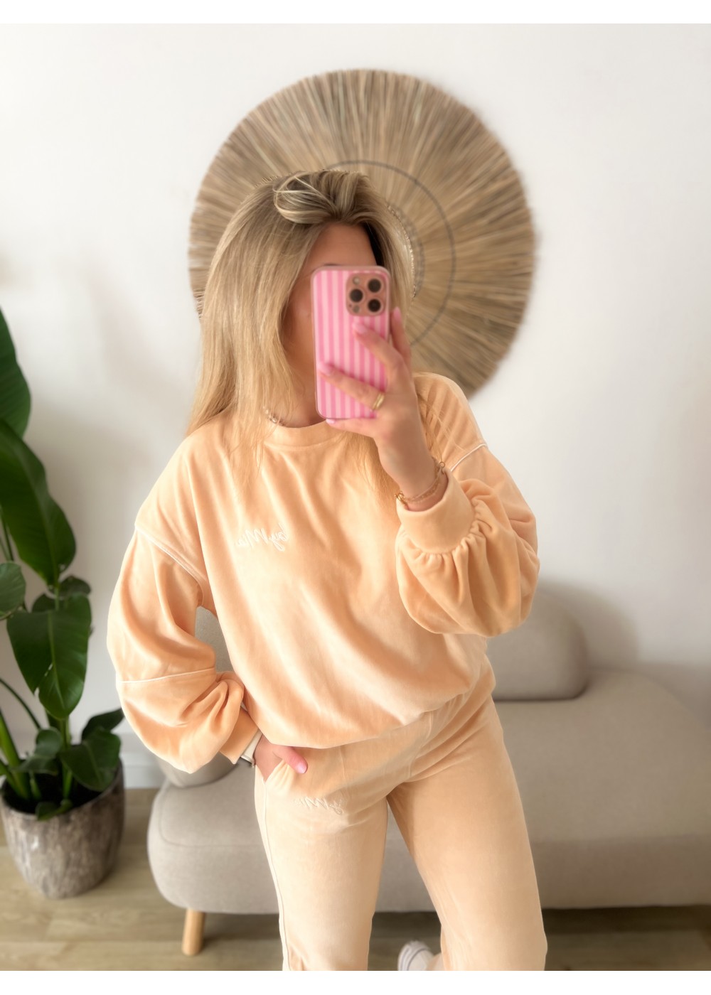 Komplet welurowy morela