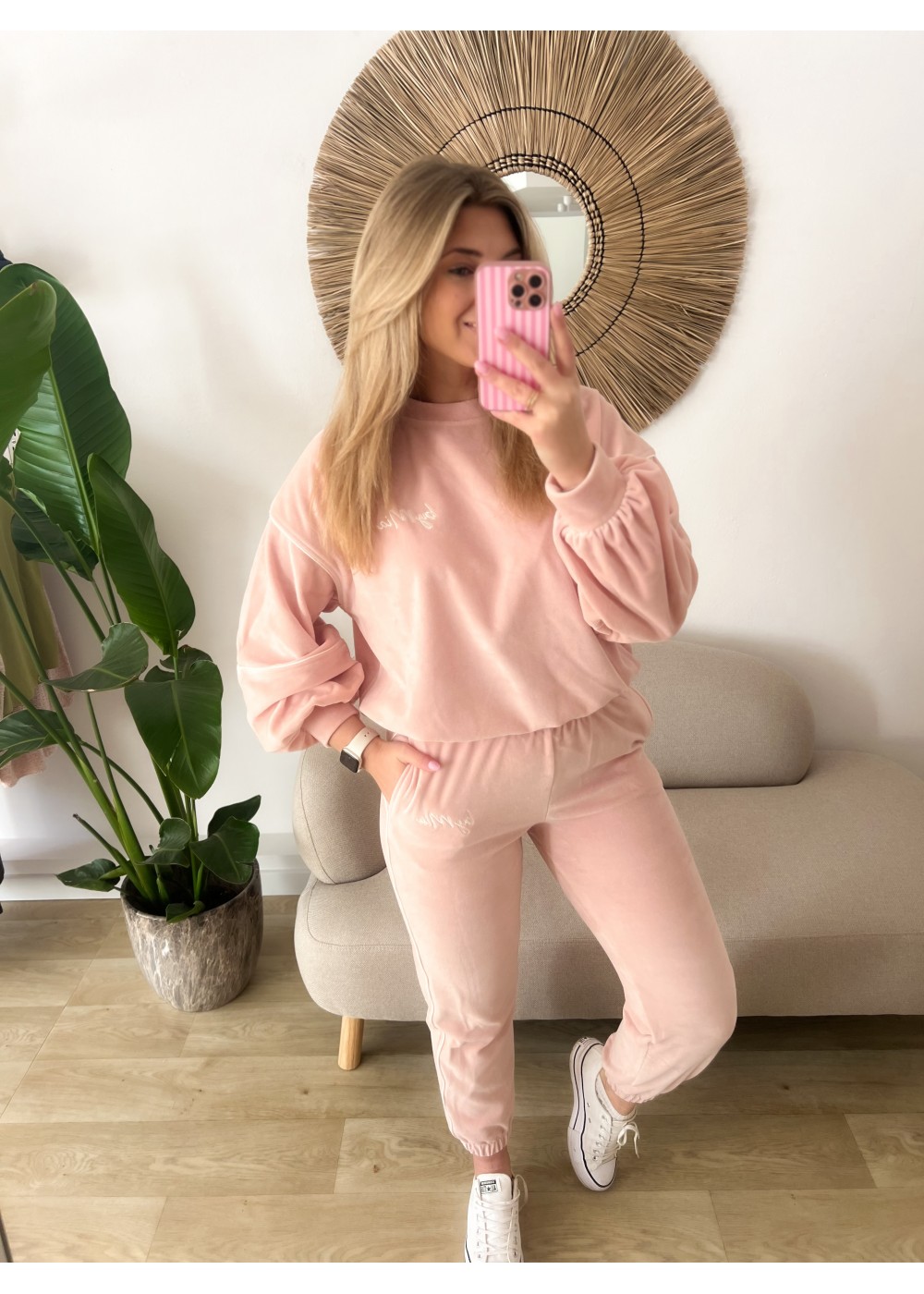 Dwuczęściowy. Składa się z luźnej bluzy i spodni typu joggery.