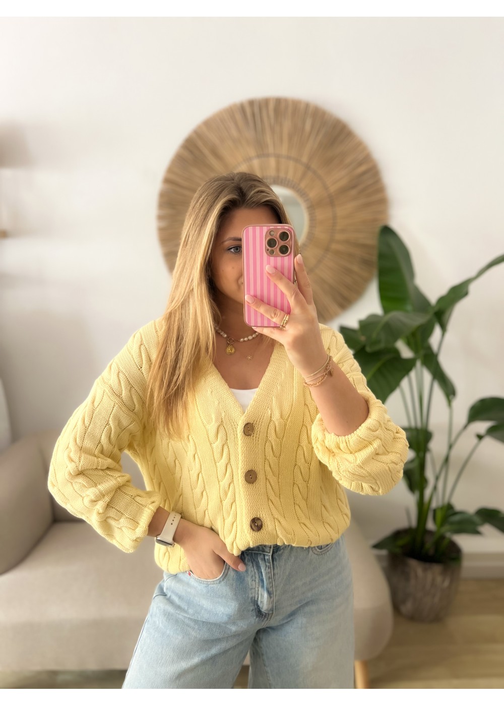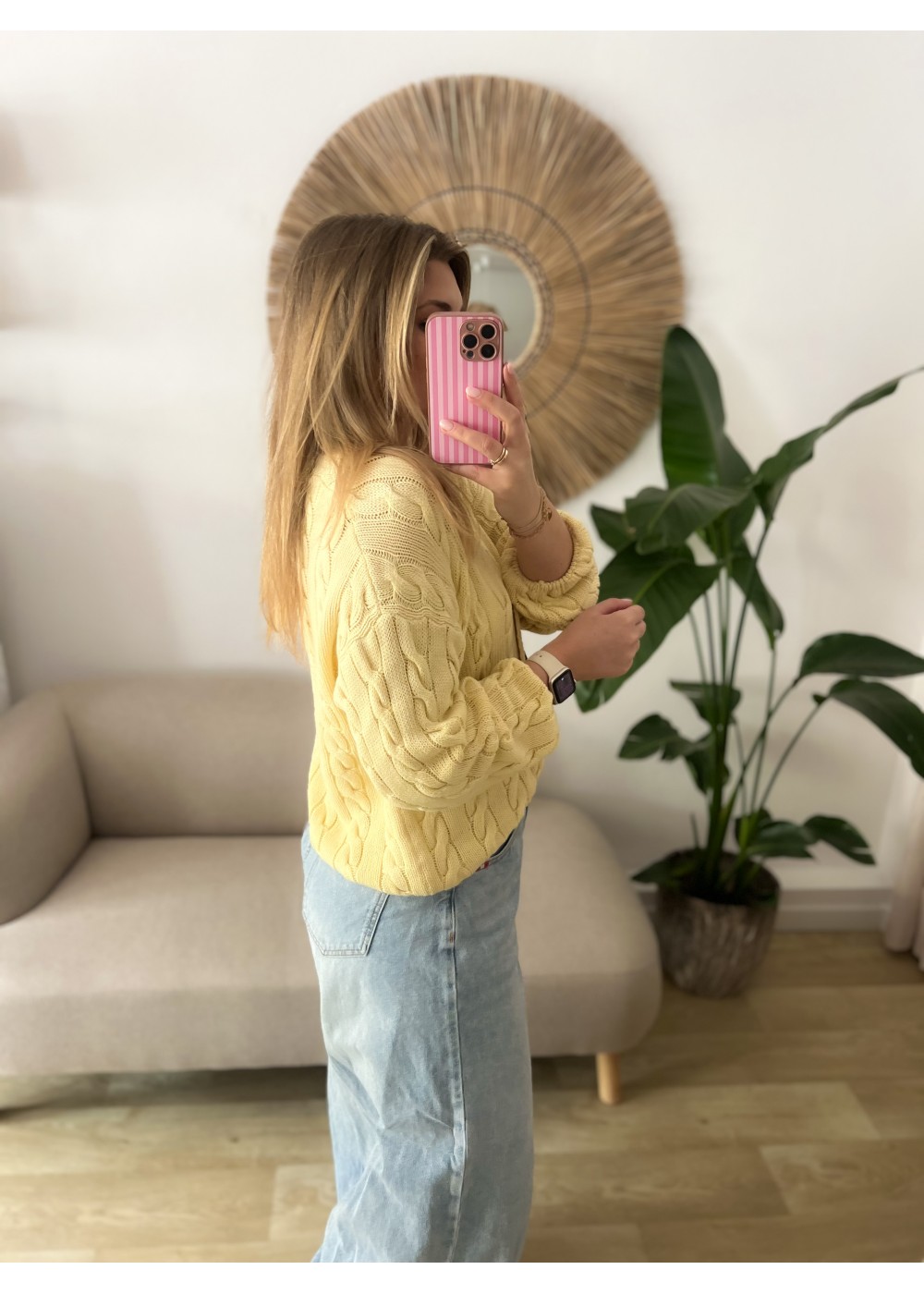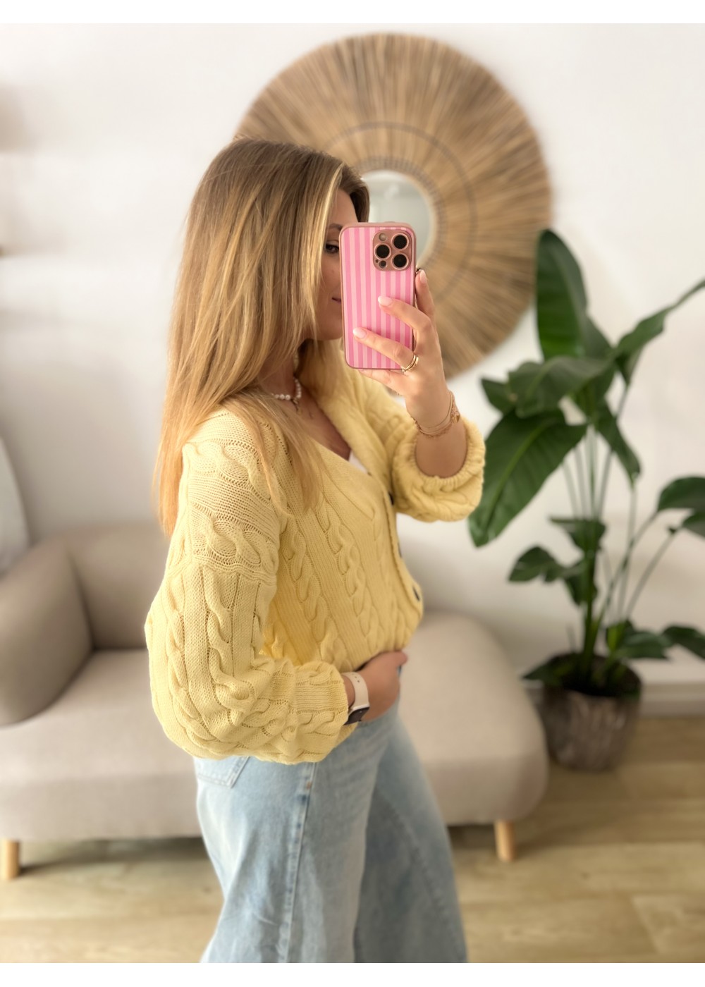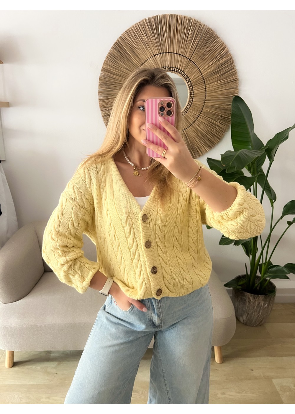 Sweter z drewnianymi guzikami żółty